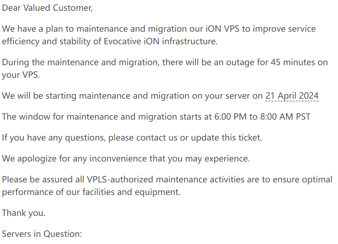 接上游通知,洛杉矶联通优化服务器需要维护,时间在北京时间4月22日凌晨,到时会主机无法访问,至于会不会更换IP地址,暂时未知,请注意本站通知。